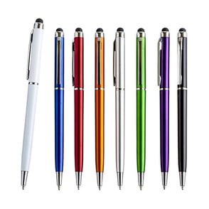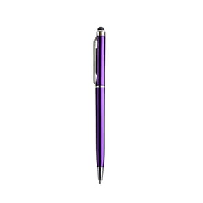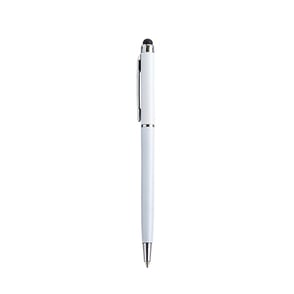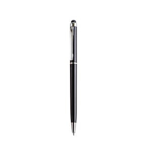 Bolígrafo de plástico con mecanismo retráctil, con apariencia metálica, clip metálico y goma touch screen.