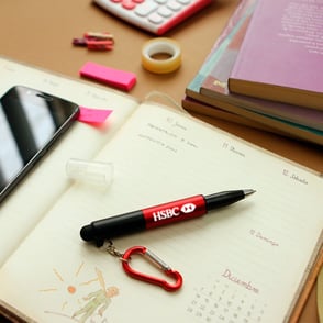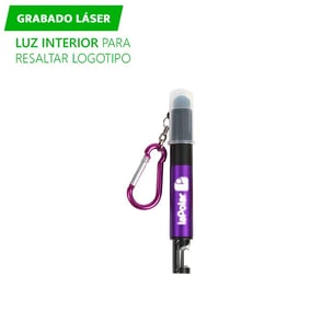 Bolígrafo con destapador, puntero touch, arnés y luz interior para resaltar logotipo al grabar en el barril, fabricado en plástico ABS y metal. Tinta de escritura negra.